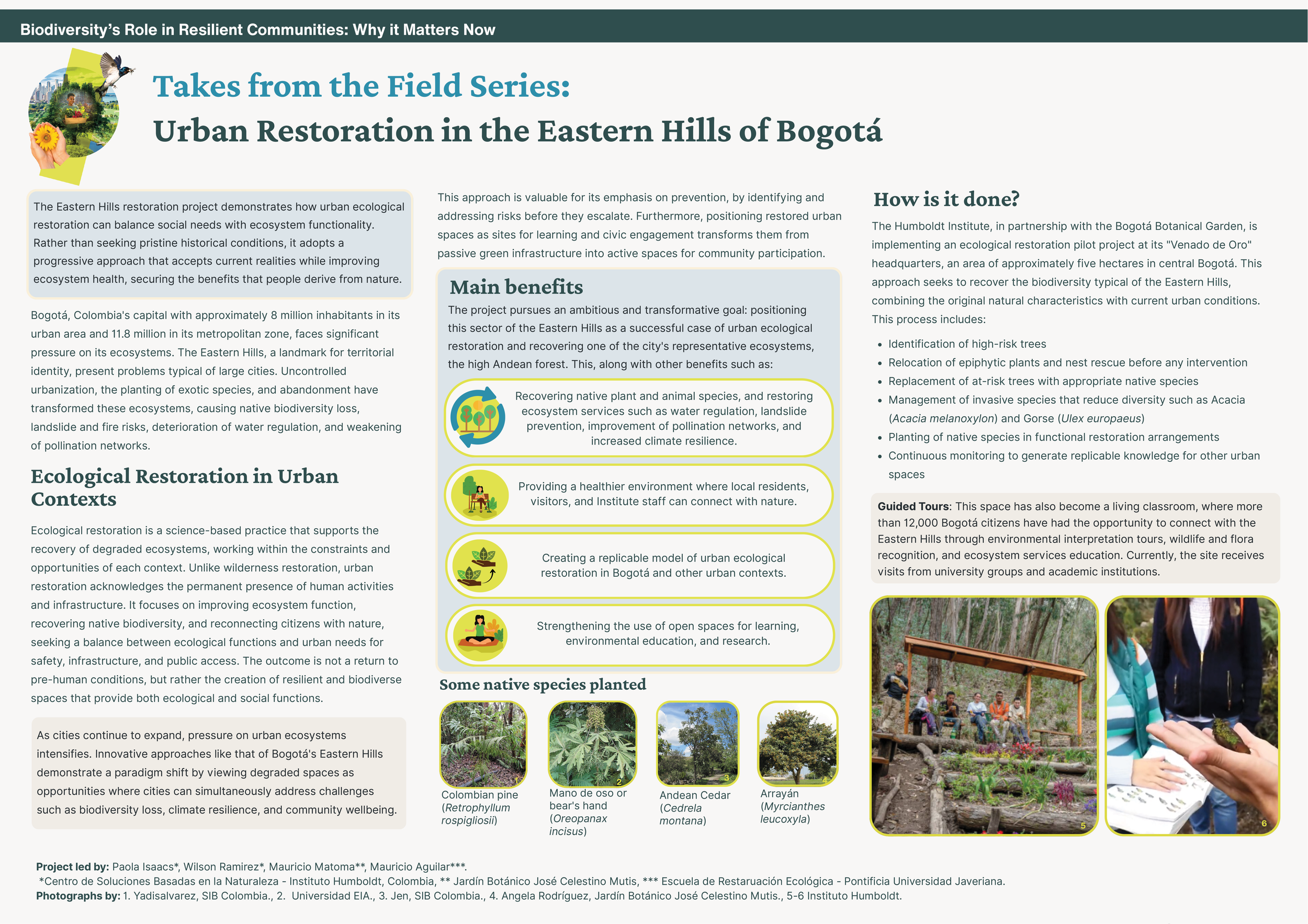 Over the first six weeks of September and October, we offered a series of mini-case studies called ‘Takes From the Field’ that highlight innovative initiatives taking place in Latin America, Europe, and the United States. Each case study highlights key insights, accomplishments, and challenges that are relevant to other places interested in biodiversity-informed urban actions.